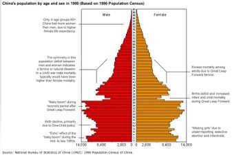 His latest effort, China-Profile, contains a range of data (such as figure above, Population by Age and Sex in 1990) on human development, natural resources, policy, economy, science & technology, infrastructure, and culture.