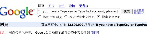 Well, this is handy. See the comment above? It’s from what I’m guessing was a spambot that was hitting all of the results of the Google China search that’s shown in the screenshot of this post. I happened to be online when it was doing the search and it kept showing up on the stats. When I tracked back, I found the search statement above. Hope that helps.