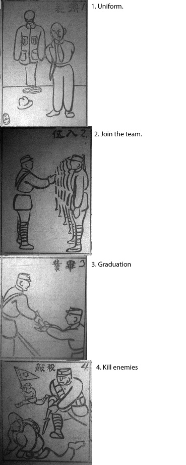 Image excerpts spliced from scans of 王曲, the official journal of Hu’s #7 military school outside Xian. These particular panels are about military training during the War of Resistance Against Japan.