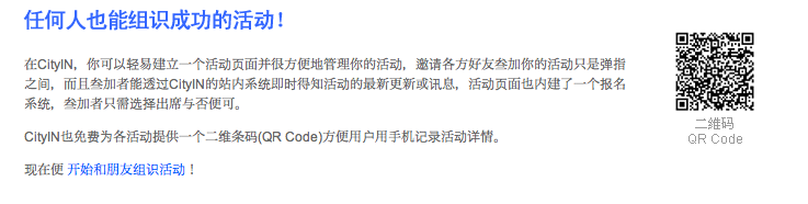 CityIN generates a QR code image for each user-created social events, visitors just need to scan the QR image with their mobile phone camera, and at maximum 4296 English characters (which is more than 1000 Chinese characters) will be read and input into their phone.