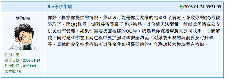 Here he is, dispensing advice about stolen QQ numbers and property: