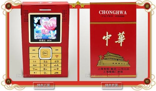 Chinese cigarette phones, such as the Cigarette King 3838, which come in Zhonghua, Mild Seven, Panda or Marlbara brands. 1.5 inch display, very realistic and supposedly hard to distinguish from a real pack.