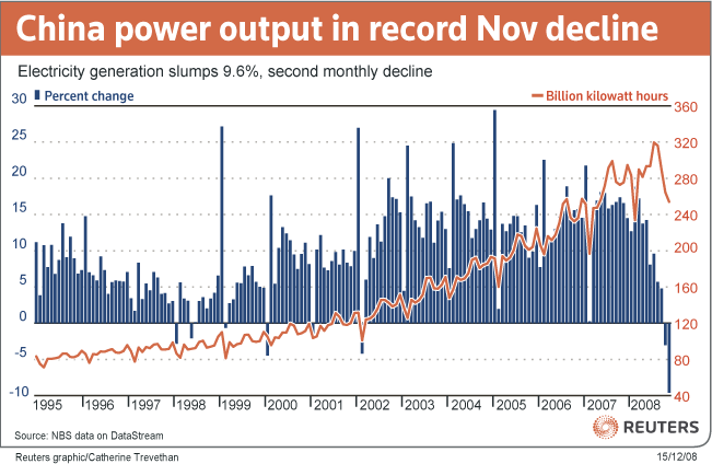 Last month, power consumption was down a tenth on November 2007, the biggest decline on record.