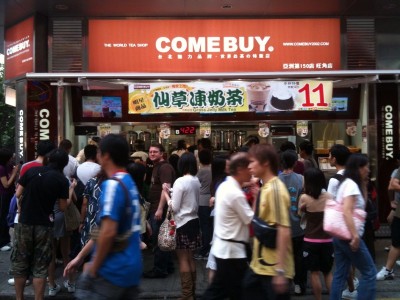 Pearl milk tea makes a comeback in Hong Kong Posted on October 26, 2009 by Jason Li Though pearl milk tea (or bubble tea) has been waning in Hong Kong for a while, it’s apparently still able to draw a crowd — particularly when it caarges only 12$ HK for a big cup. Above: Come Buy, a Taiwanese chain in Mong Kok. Source: Casey’s Fist of Fun.