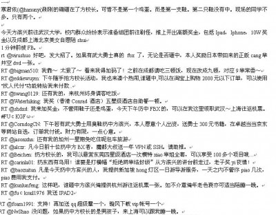 There are also the less original prizes such as one-night-stand, dinner or travel package. The netizens who offered one-night-stand must have waited with anxiety before they found out the gender of the shoe-thrower. It turned out that the only person who did throw a shoe at Dr. Fang during his speech was a boy, whose online nick name is “Coldness Leaning on You” (寒君依). Mr. Coldness was almost caught by the security guards in the lecture hall after he threw his shoes, but many students threw themselves in the way of the security guards and earned time for him to escape. Besides the netizens who did have one-night-stand with him, all we know about him is that he has big feet, judging from a photo he posted online after the shoe-throwing event.