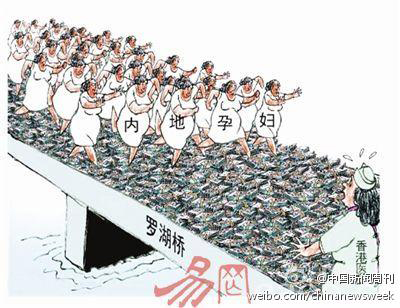 I first noticed this, showing a swarm of “mainland pregnant women” crossing Luohu Bridge, which connects Hong Kong with the mainland city of Shenzhen: