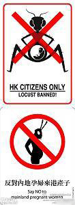 And so, of course, I knew a meme was afoot. What did I find? Locusts, and lots of them. A full page ad, shown above, appeared in Apple Daily, one of Hong Kong’s newspapers, and it began circulating on the internet. Here’s the translation from the Wall St. Journal: “Hong Kong people, we have endured enough in silence. Are you willing for Hong Kong to spend one million Hong Kong dollars every 18 minutes to raise children born to mainland parents?”