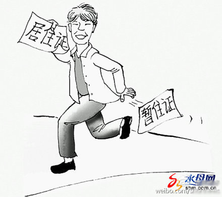 And this, showing a man dropping a temporary residency permit and proudly brandishing a permanent residency permit:
